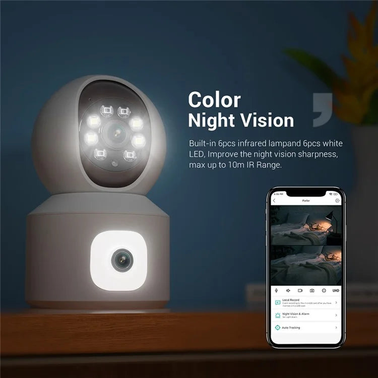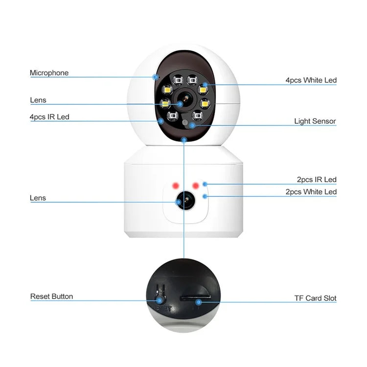 Enhance your home or business security with this advanced Dual-Lens Smart Camera, offering simultaneous monitoring of two directions on a single screen. Whether for home, shop, or supermarket use, this AI-powered device ensures broader coverage, higher clarity, and smarter control—all from your phone.